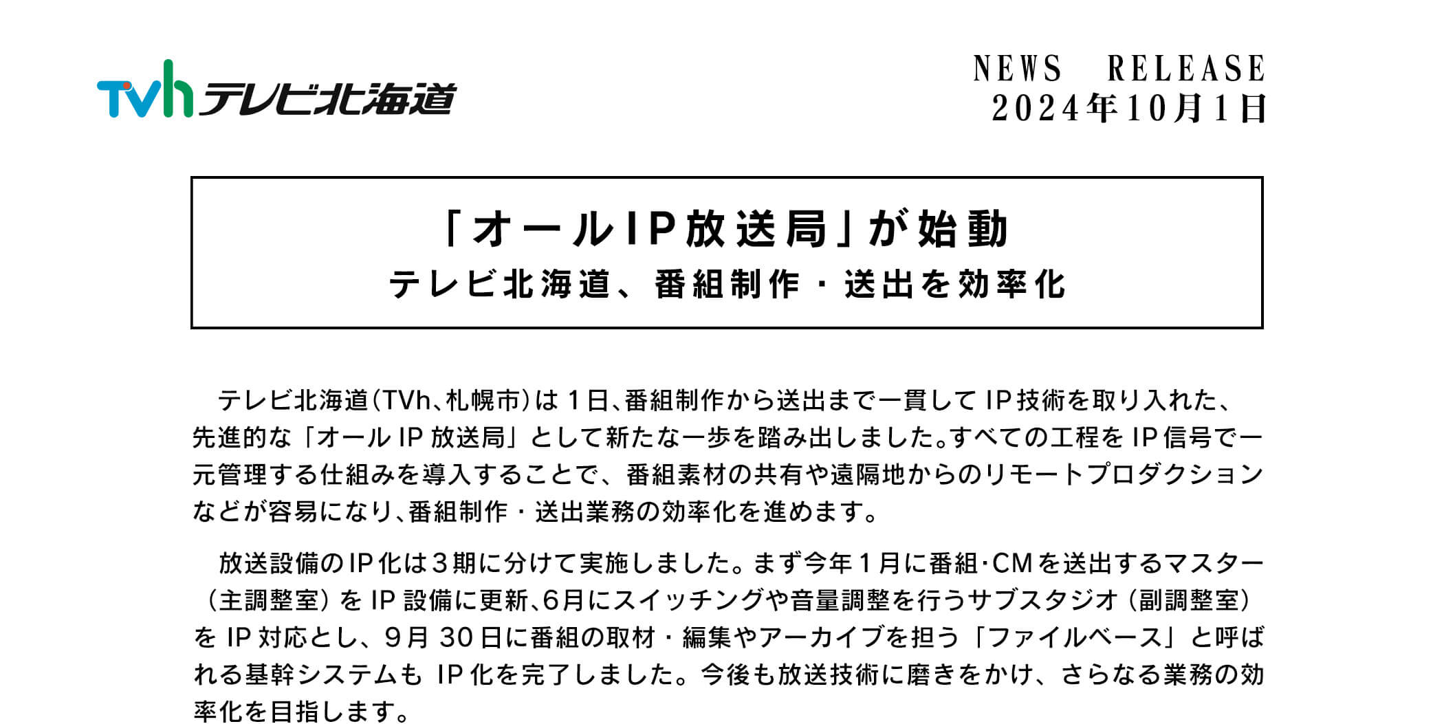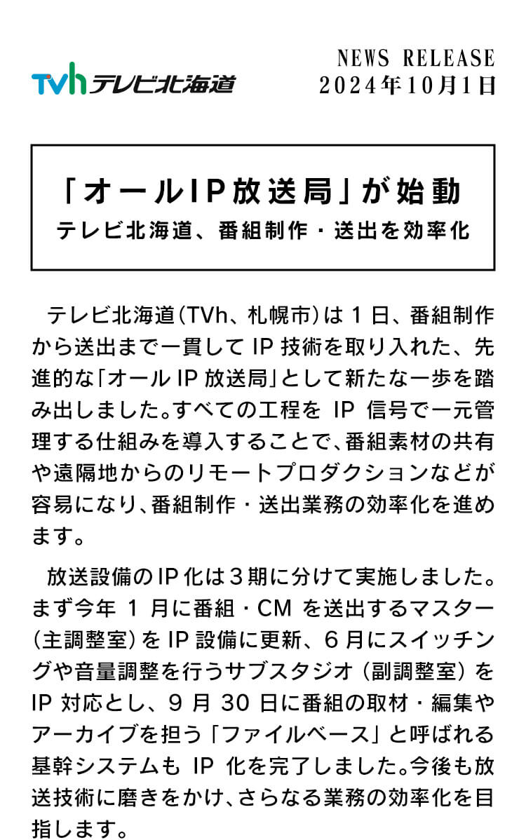 「オールIP放送局」が始動 テレビ北海道、番組制作・送出を効率化