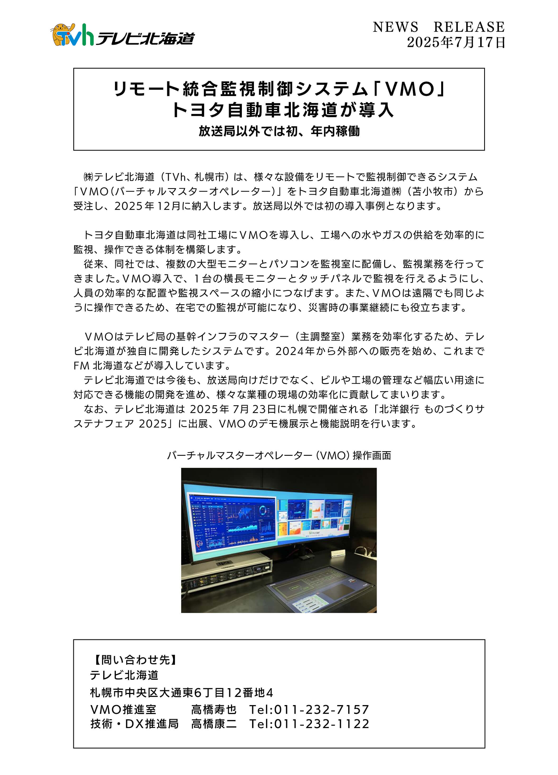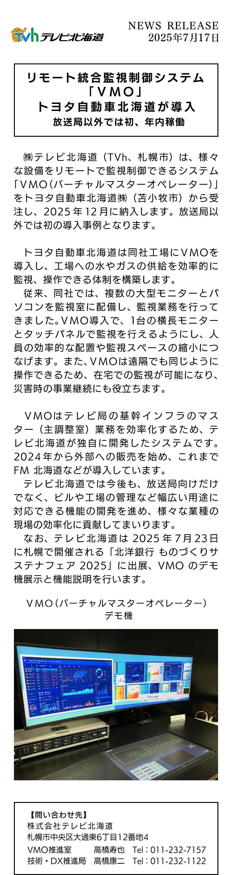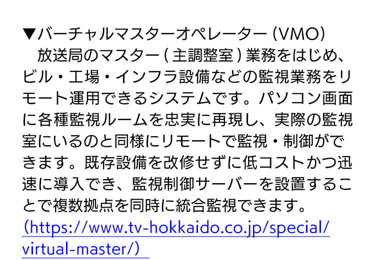 リモート統合監視制御システム「VMO」 トヨタ自動車北海道が導入