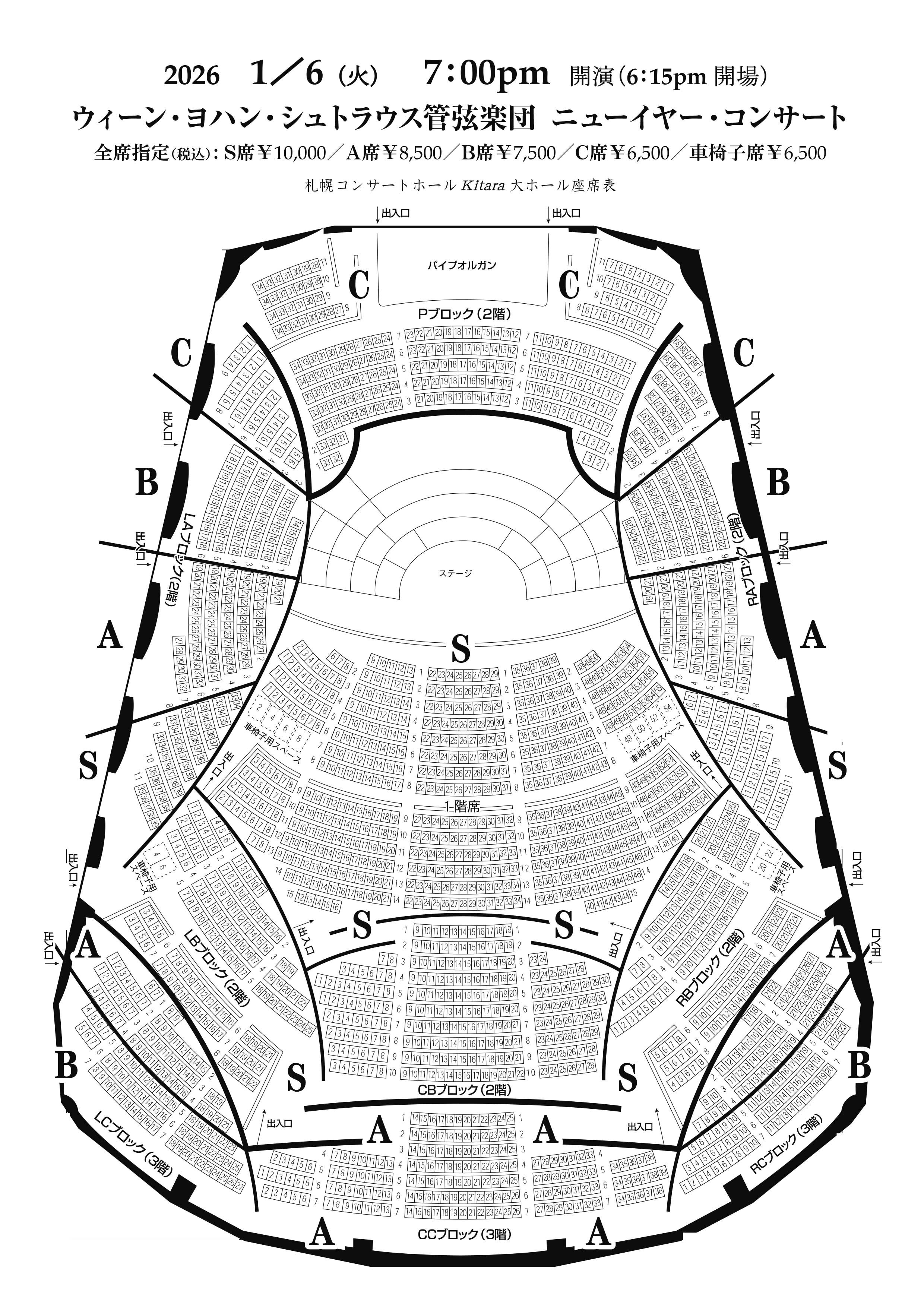 S席10,000円 A席8,500円 B席7,500円 C席6,500円