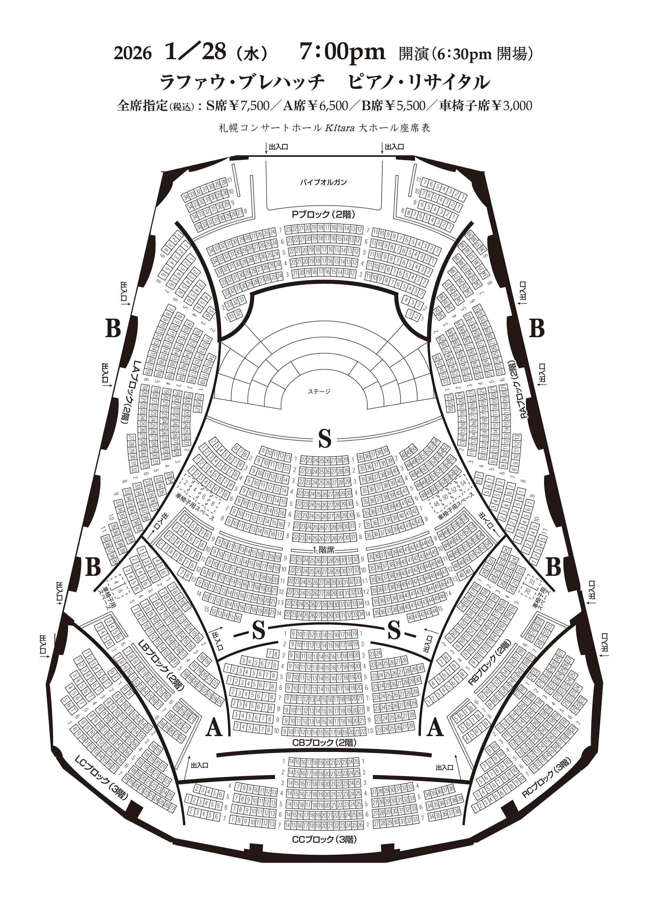 S席7,500円 A席6,500円 B席5,500円