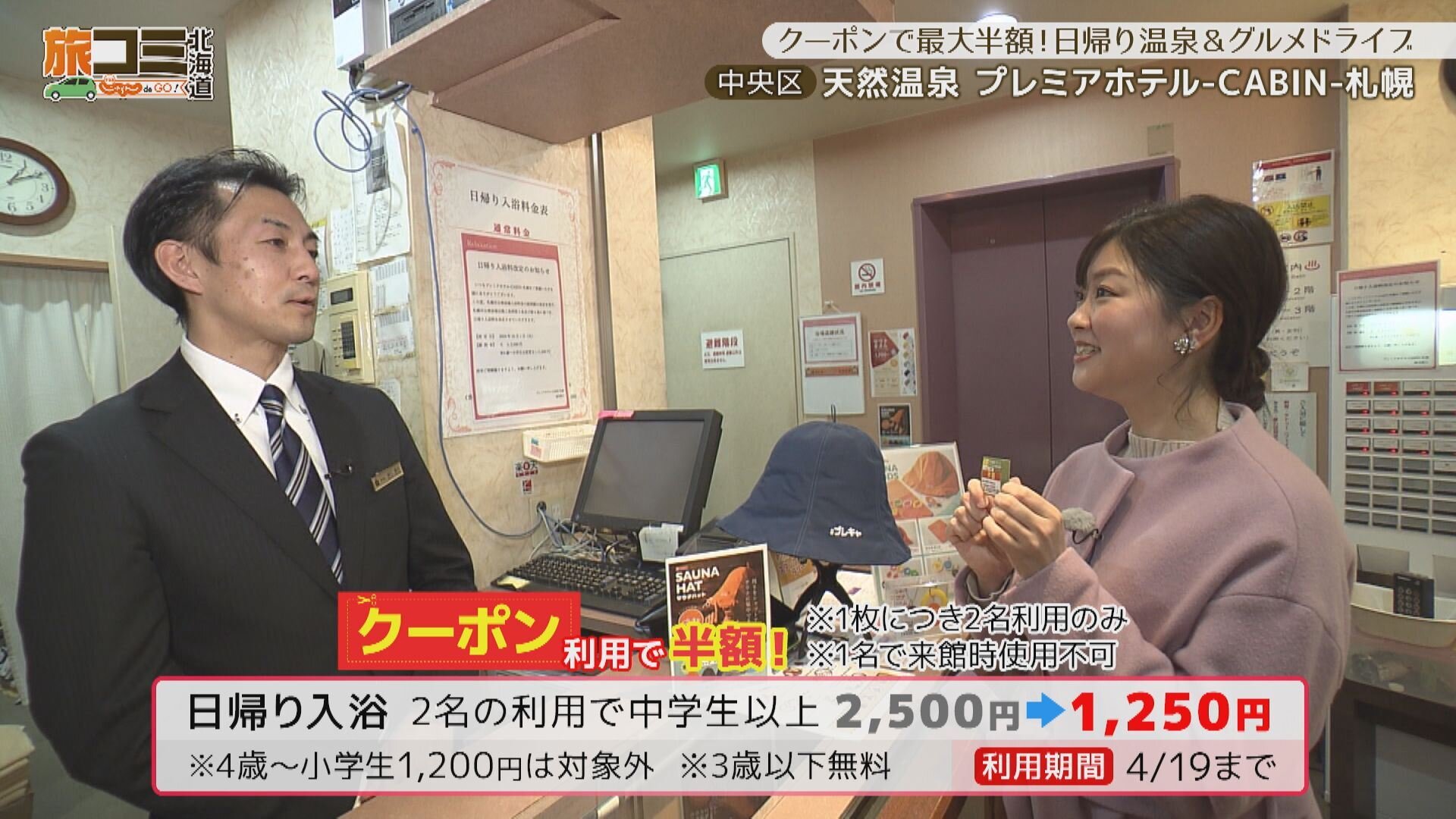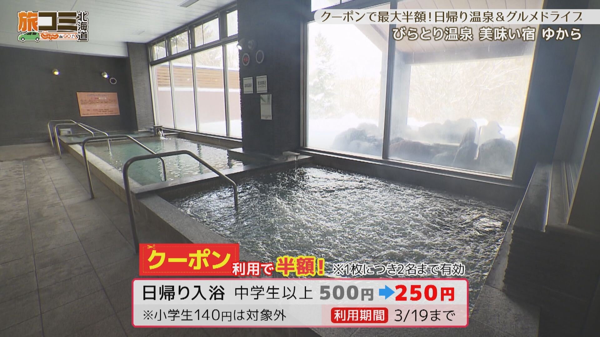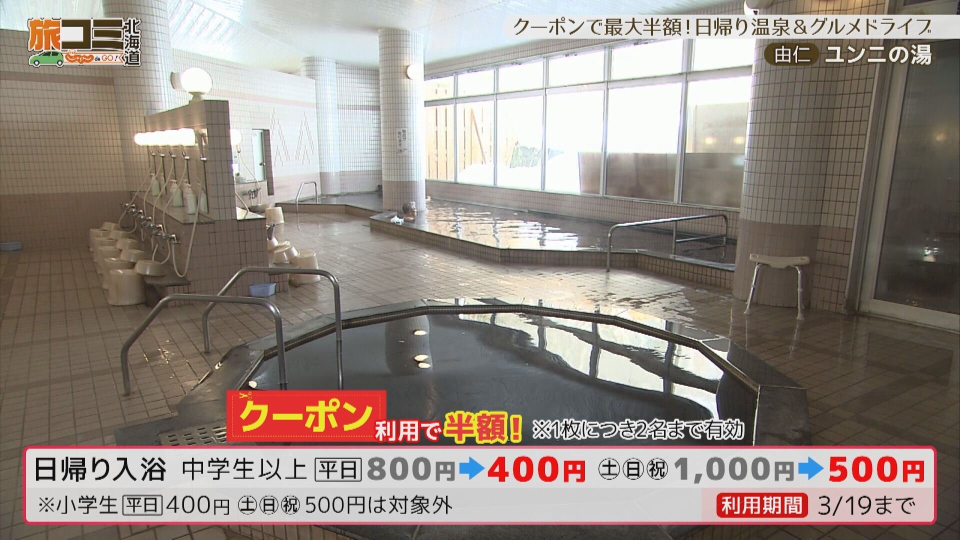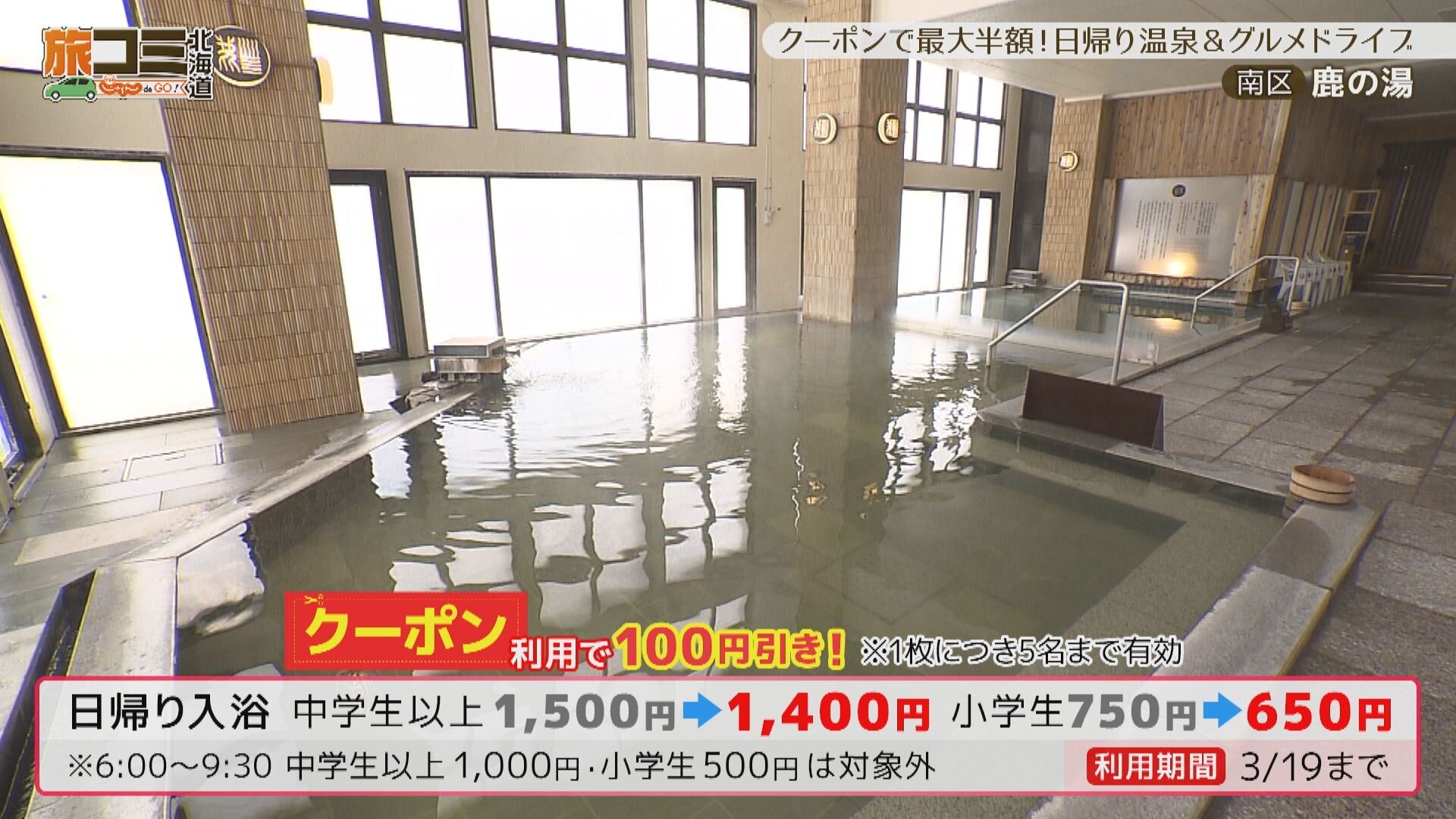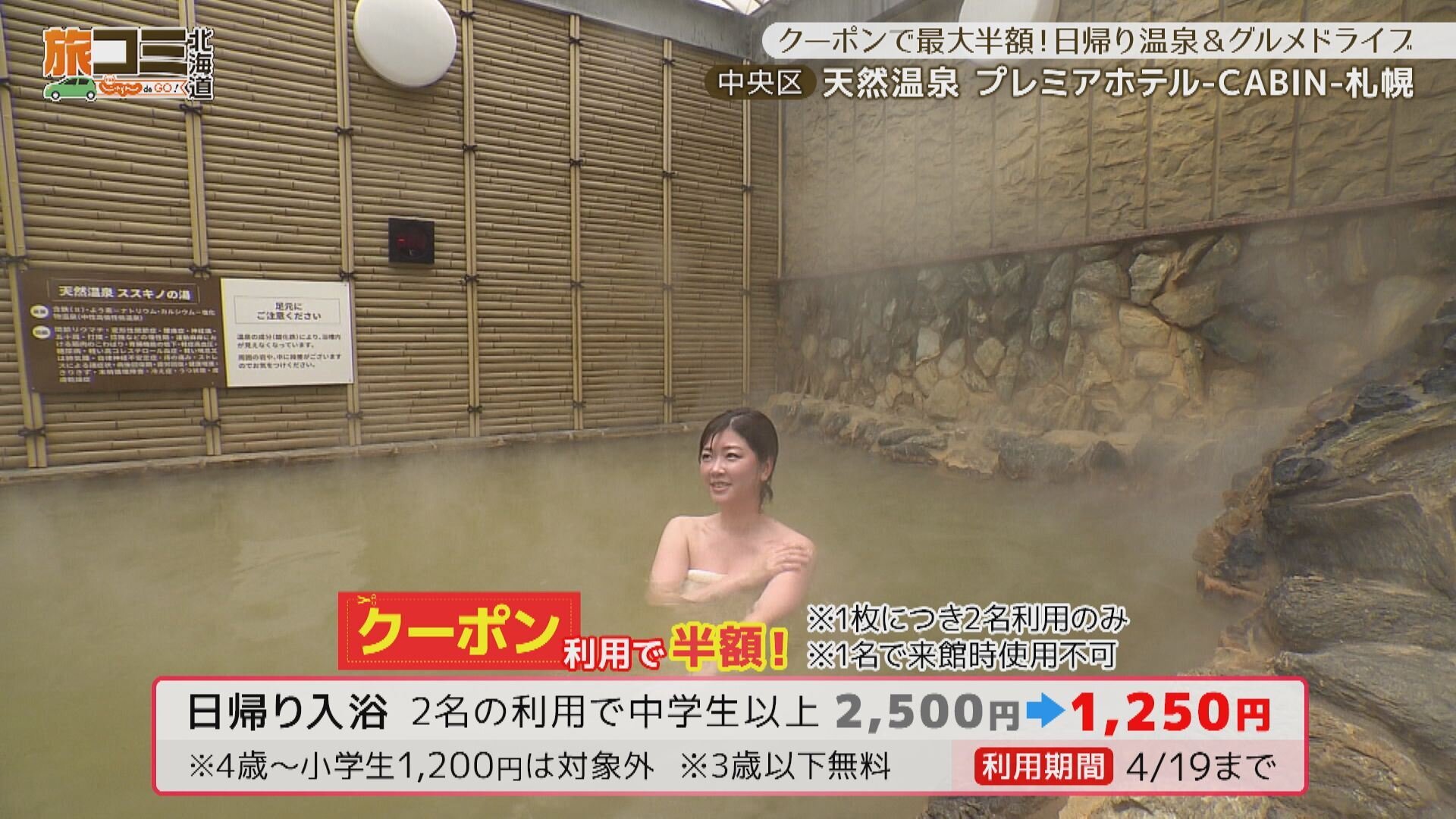 そして、北海道じゃらん3月号に掲載のクーポンを使うと、お得に日帰り温泉を