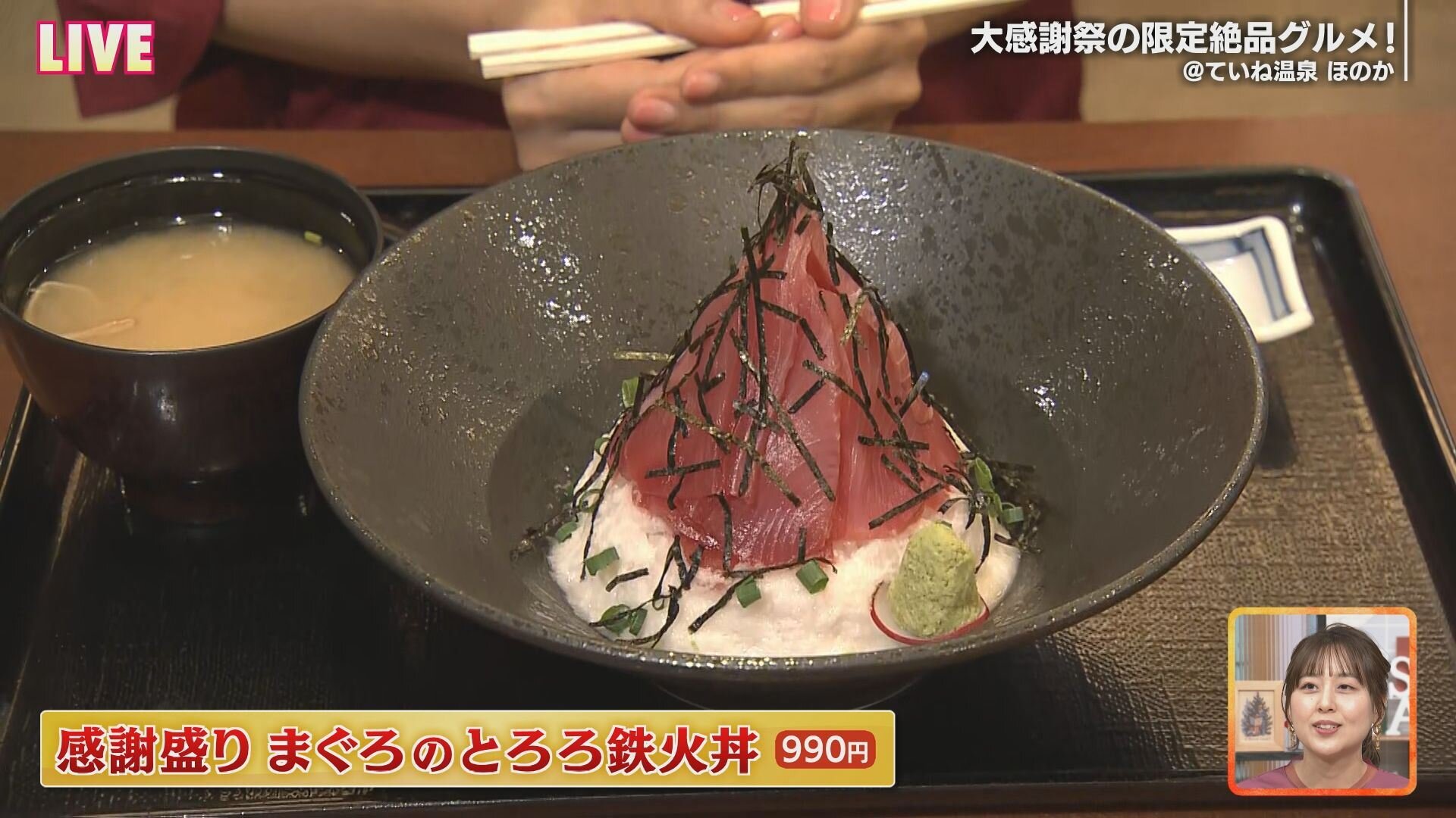 中継で紹介した「感謝もり まぐろのとろろ鉄火丼」は期間限定メニュー、