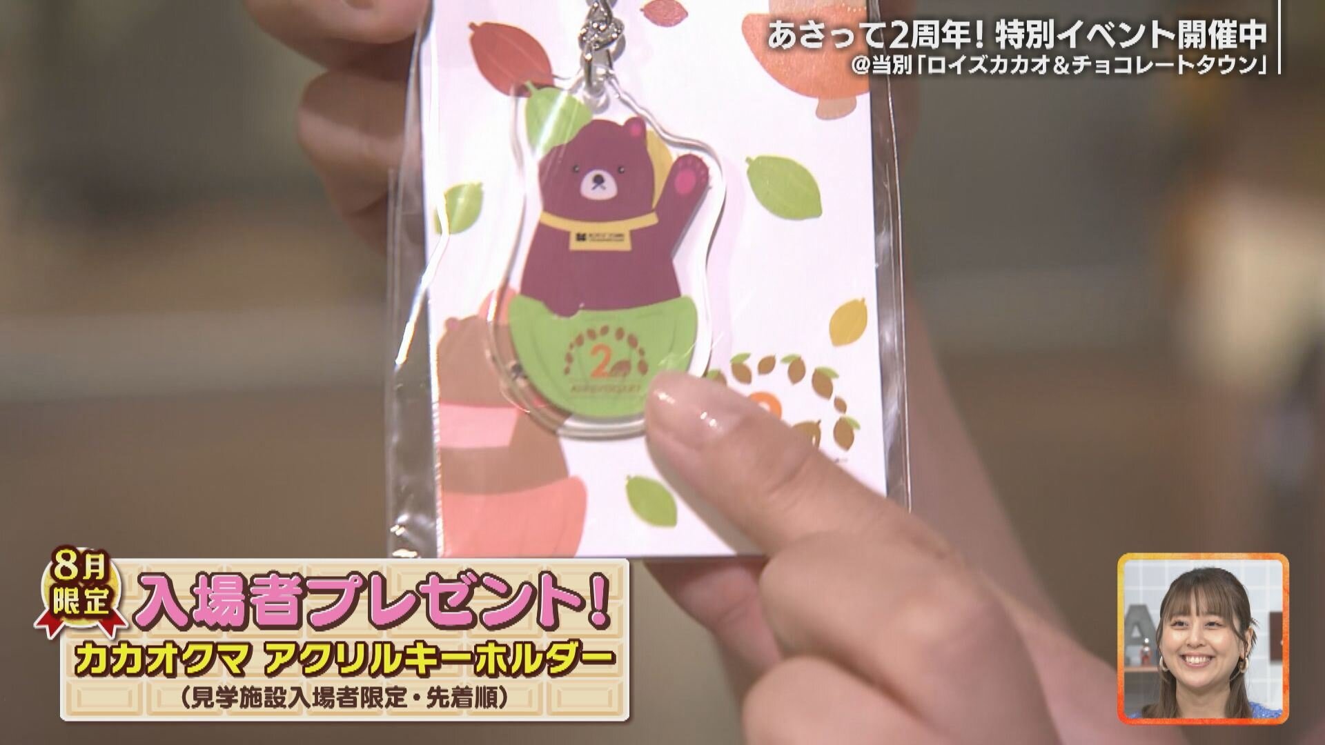 見学施設入場者限定・先着順で施設のマスコットキャラクター『カカオクマ』のアクリルキーホルダーがゲットできます。