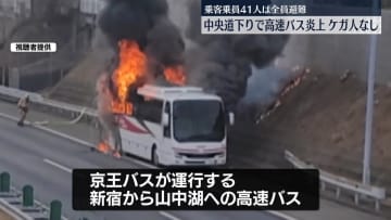 乗客乗員41人は全員避難…ケガ人なし 中央道下りで高速バス炎上 [02/18]