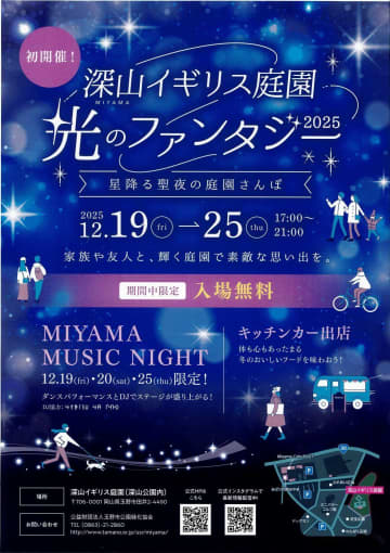 【12/19~25】岡山県玉野市の深山イギリス庭園のイルミネーションイベント「深山イギリス庭園 光のファンタジー2025 星降る聖夜の庭園さんぽ」初開催! [12/15]